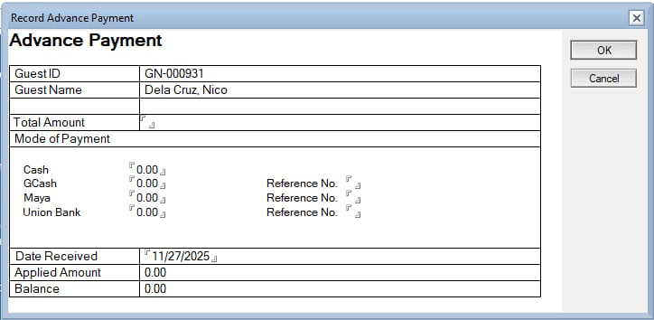 When the guest already settled their payment before they check in, record their payment in Advance Payment.