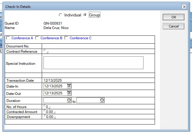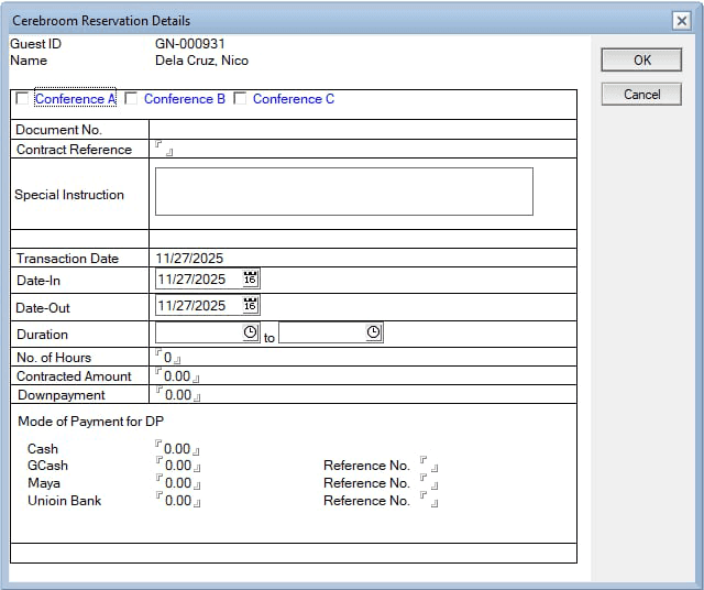 Once applied, the system will deduct it from the total, and the For Payment amount will correctly show the guest’s remaining balance. If they have already paid in advance, the system will automatically deduct their advance payment.